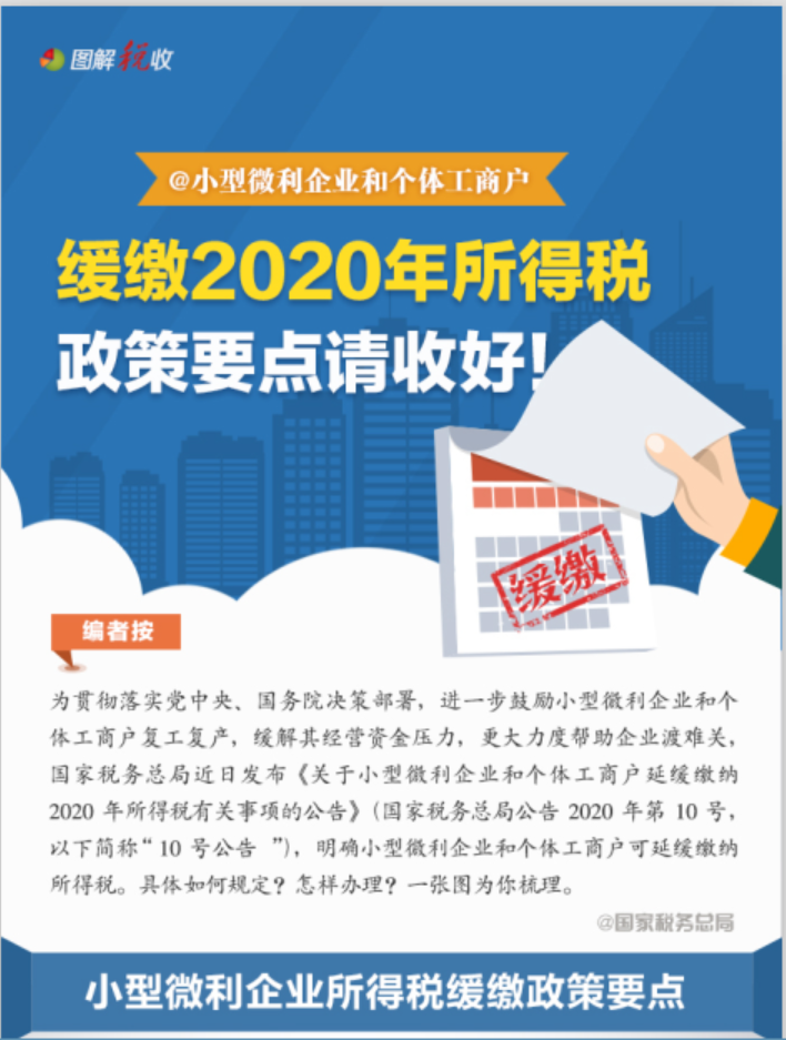 一图了解:小型微利企业和个体工商户缓缴2020年所得税政策要点